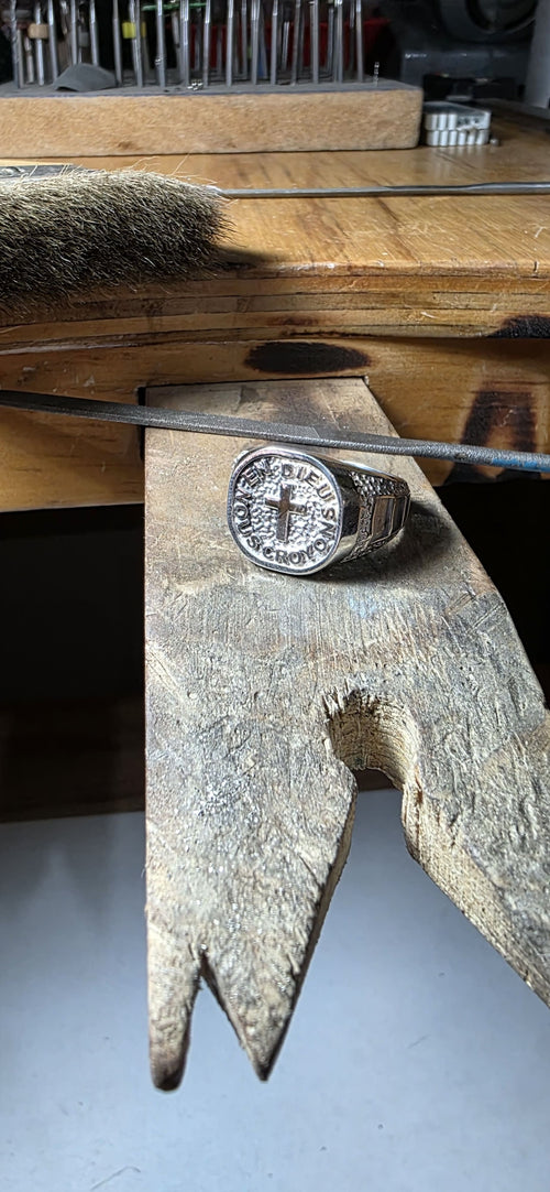From the smooth curves of the band to the precise inlay of national colours, every detail reflects care, precision, and meaning. No two rings are exactly alike — each is a unique piece of heritage shaped by skilled hands.